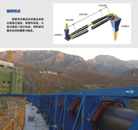 圓管帶式輸送機(jī)系列產(chǎn)品是一種適用于各種復(fù)雜地形條件下綠色環(huán)保的連續(xù)物料輸送設(shè)備,具有節(jié)能環(huán)保、不受地形限 制、物料適用性廣、輸送效率高等優(yōu)勢特點(diǎn),并已在礦山、港口、冶金、電力、水泥、煤化工等領(lǐng)域廣泛應(yīng)用??筛鶕?jù)客戶 的具體要求,進(jìn)行地形、地質(zhì)勘探,系統(tǒng)設(shè)計(jì)、制造、安裝、調(diào)試、培訓(xùn)、操作等全方位技術(shù)服務(wù)及全過程技術(shù)支持。
